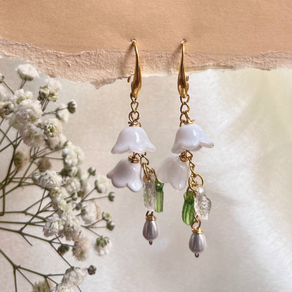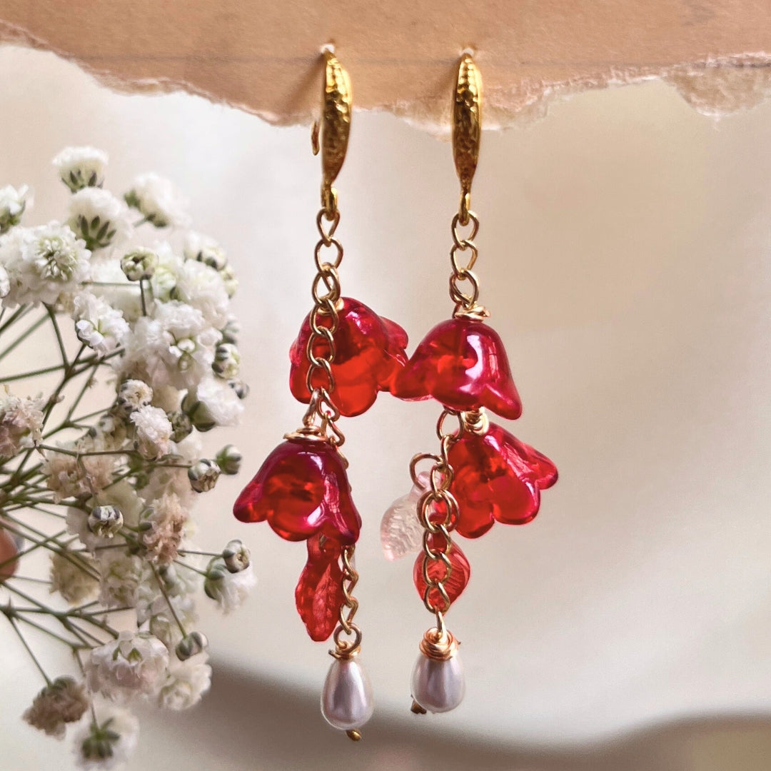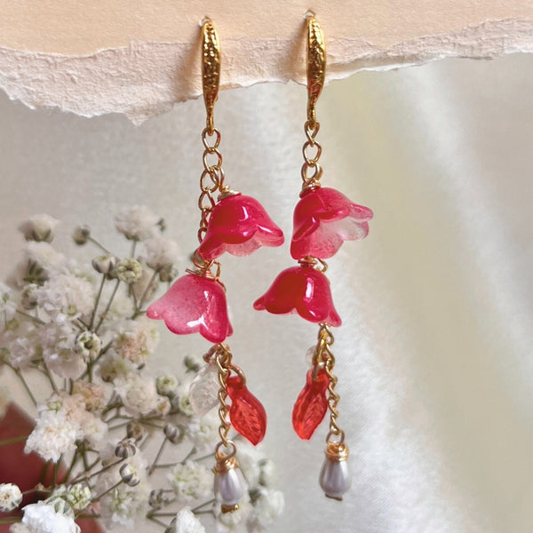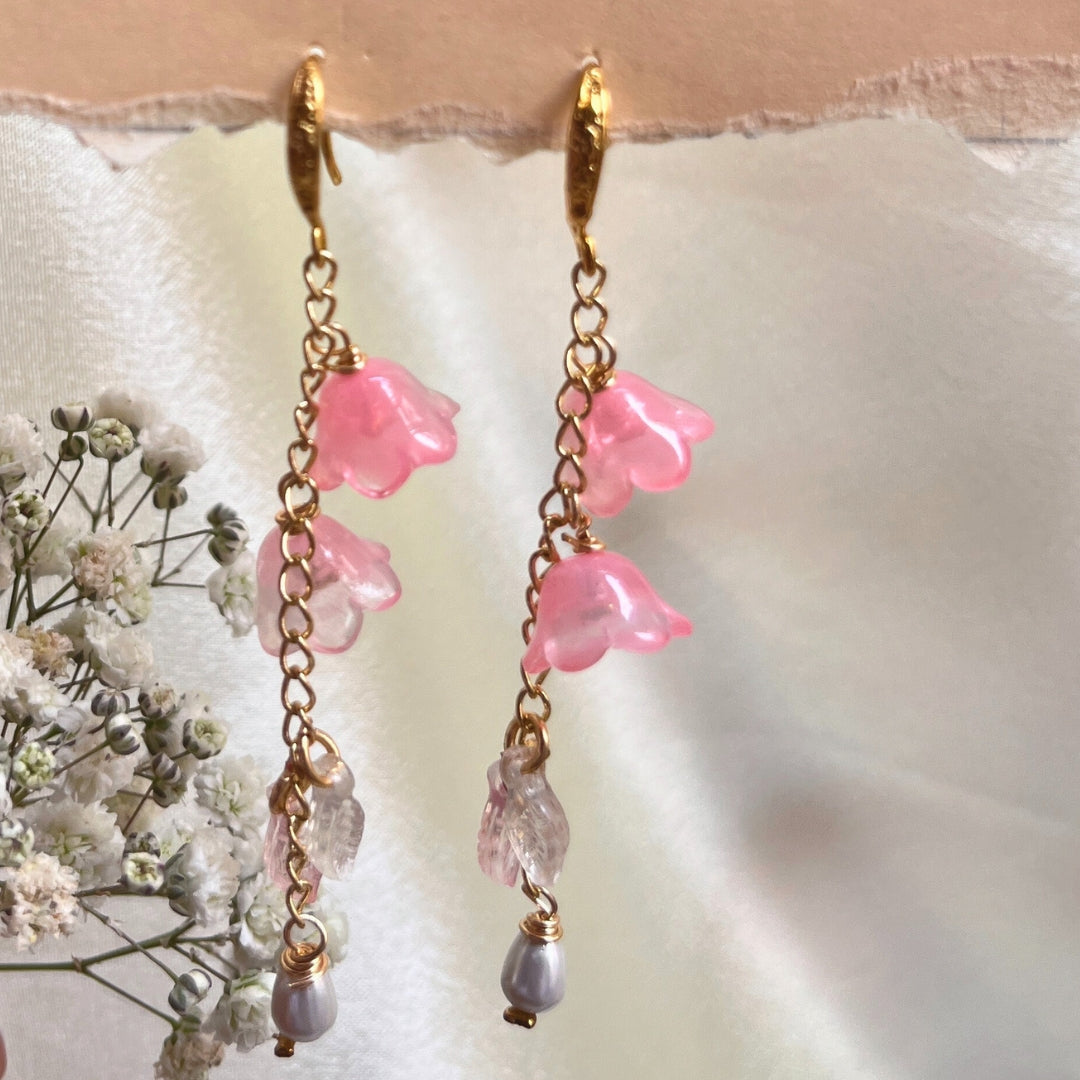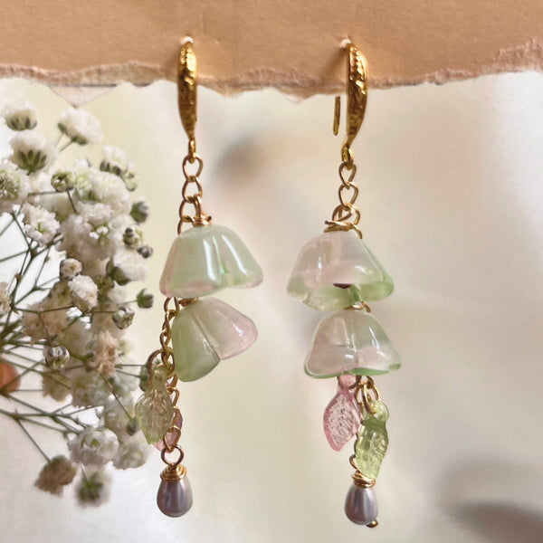 Drape yourself in a touch of enchantment with the Fairy Bloom earrings. These exquisite, handmade long-drop earrings are inspired by the secret gardens of the fae, featuring delicate glass flower beads that shimmer like captured light. The anti-tarnish hardware ensures they stay as brilliant as a moonbeam year after year.